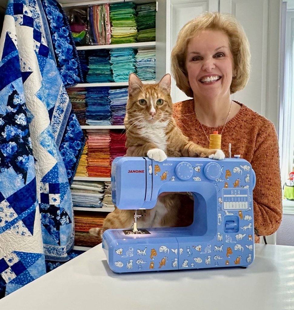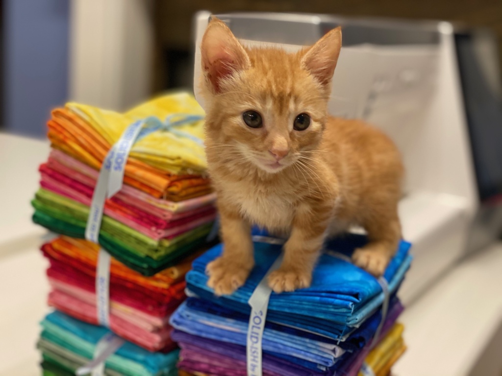 This new line is all about our sew-special kitty, Cheeto, and his buddies. We have three rescue cats besides Cheeto including Toby, Remy and Miss Tater. So the main print is called “Cheeto and Friends.”