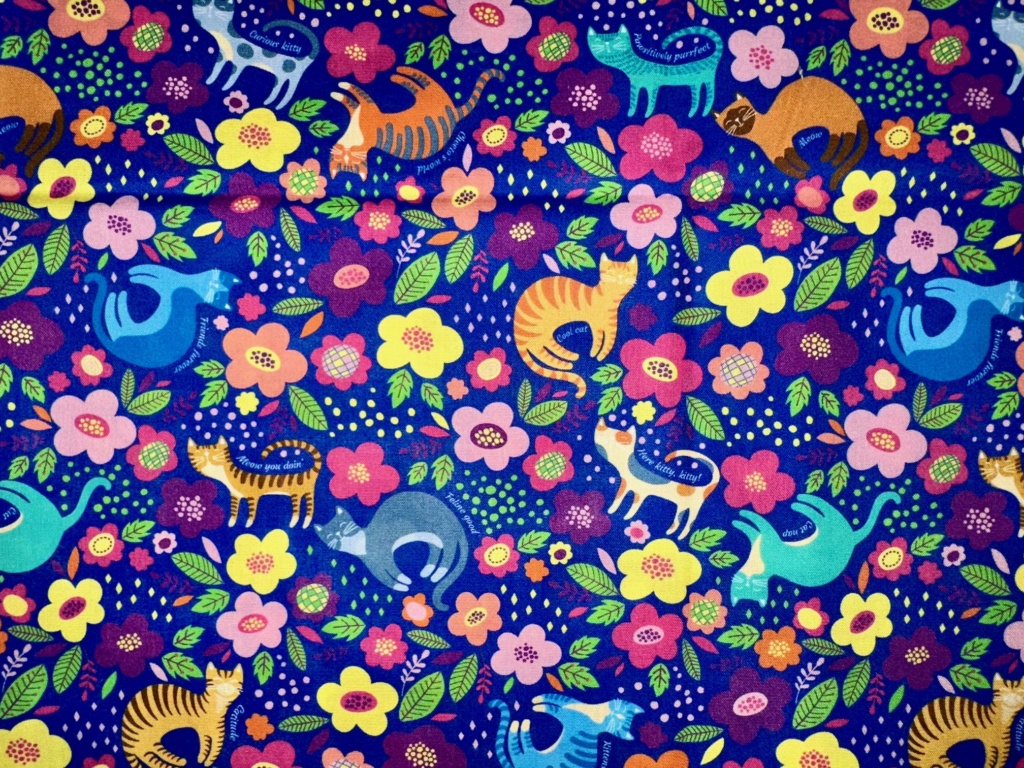 Oh what cute fabrics, I love the cats, it reminds me of my Odie. He was always on my sewing table when I was sewing.. fantastic colors and prints.
